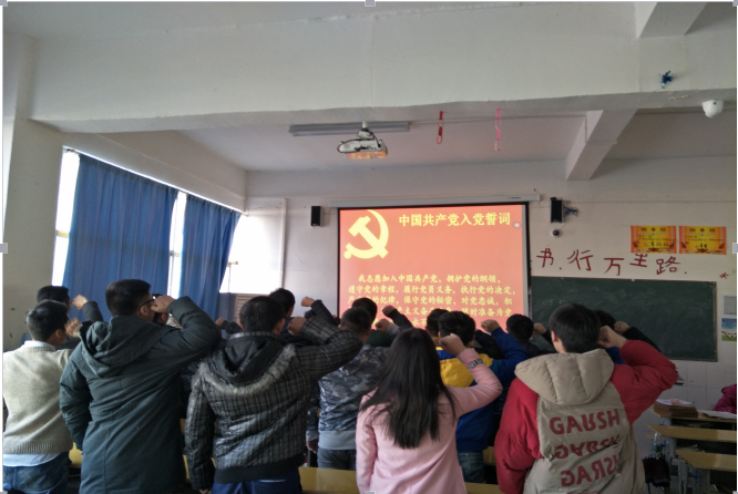 最后由党总支组织委员漆在林老师带领18名预备党员宣誓。