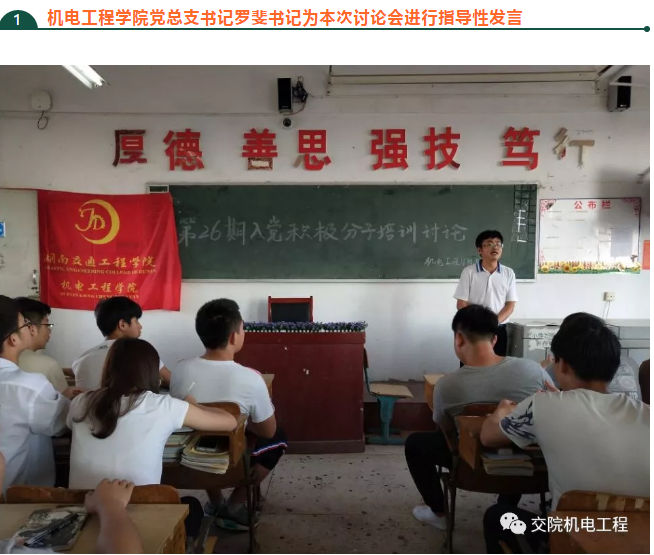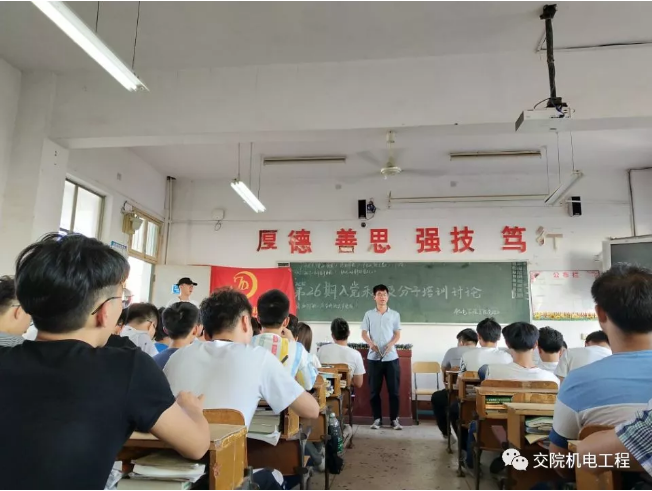 为进一步加强入党积极分子对党的基本理论知识的系统学习,提高入党积极分子的理论水平,确保新发展党员的质量,2018年5月14日,bevictor伟德官网机电工程学院第26期入党积极分子在教学楼510举办2018年度入党积极分子培训学习讨论,本次讨论由机电工程学院党总支学生支部组织,党总支罗斐书记参加并发表重要讲话。第26期入党积极分子培训班学员84人全部参加。