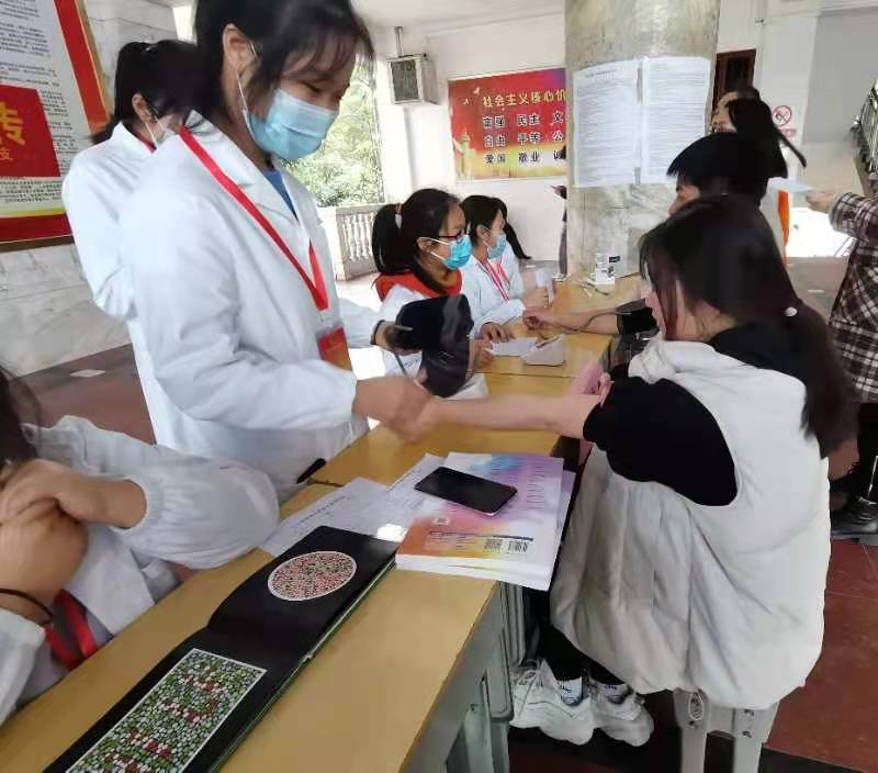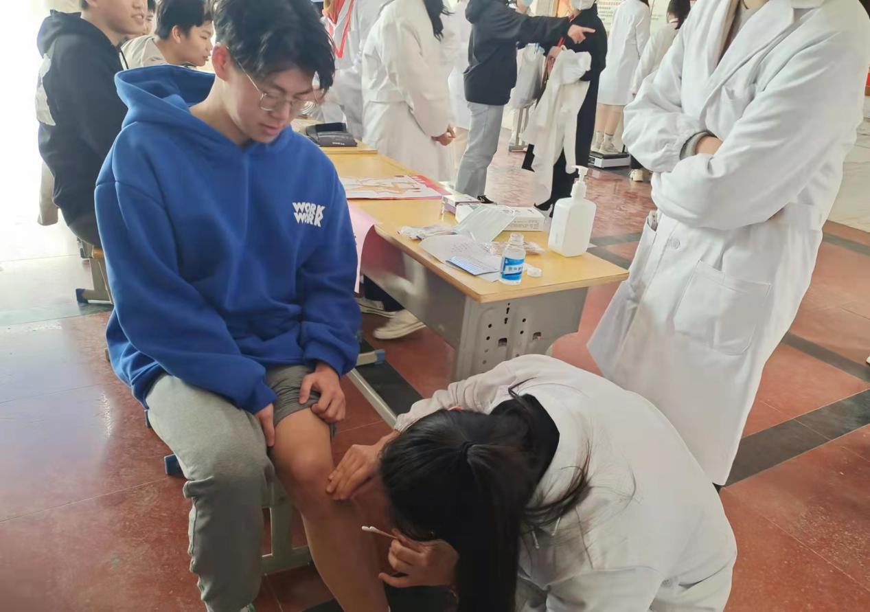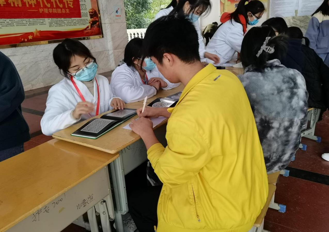 仁心如花,播撒着温暖和希望。志愿者们一早就到达活动地点,有序对场地进行布置。活动过程中,前来接受义诊的同学们络绎不绝。志愿者们积极的进行引导,热情的为他们服务,志愿者们有条不紊地为老师、同学们进行测血压、测视力、检查色盲及色弱......同时,康复治疗专业的同学们热心地为同学提供针灸、艾灸等志愿服务。