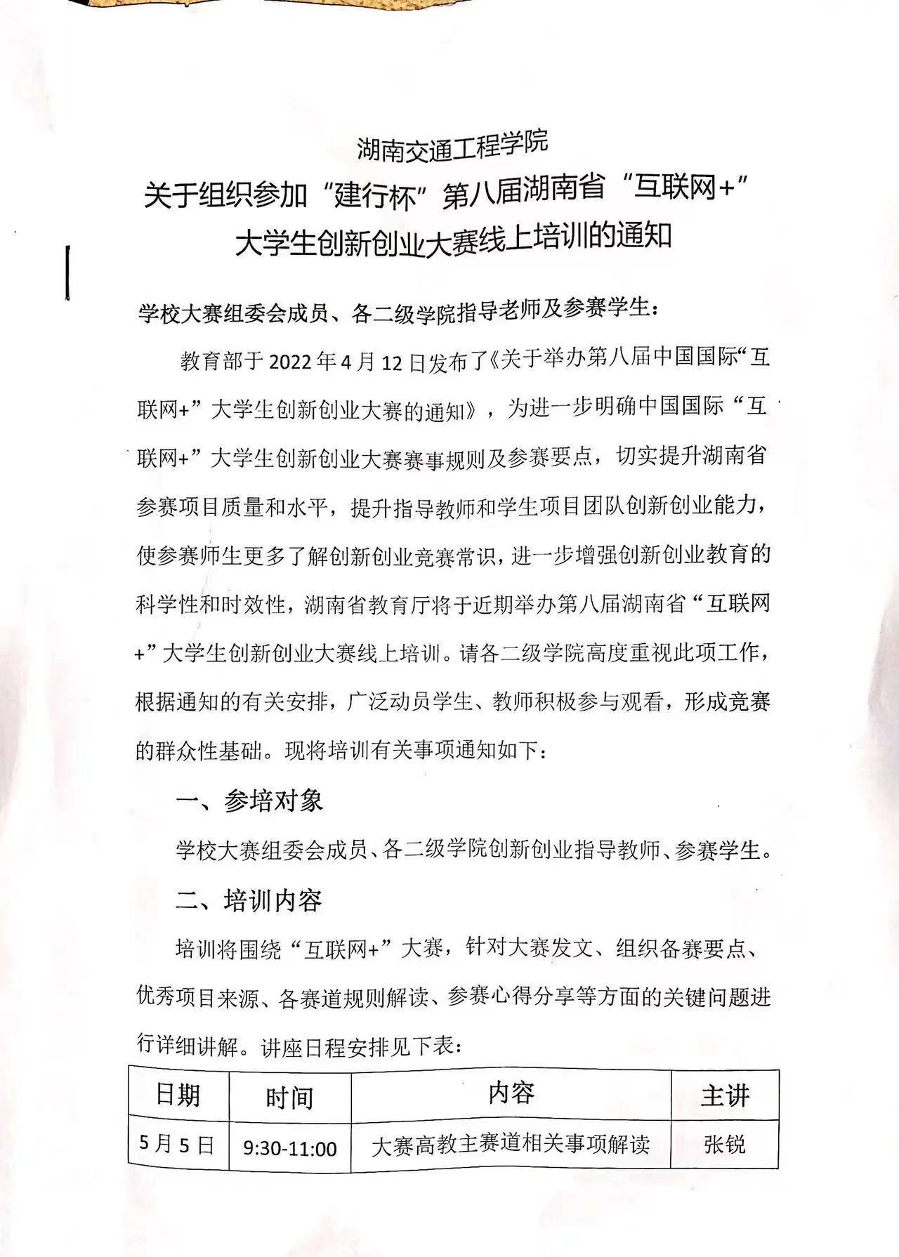 bevictor伟德官网关于组织参加“建行杯”第八届湖南省“互联网+”大学生创新创业大赛线上培训的通知