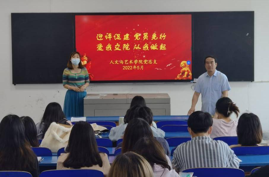 本网讯(通讯员 沈飚)为了教育引导党员师生践行“在迎评促建中“当先锋做表率”的倡议,做到团结拼搏、砥砺奋进,为谱写人文与艺术学院建设发展新篇章作出更大努力,以优异成绩迎接合格评估,学院党总支于2022年5月9日开展了“迎评促建、党员先行,爱我交院,从我做起”主题党日活动。