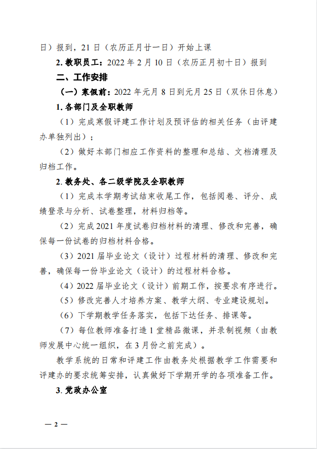 关于做好 2021-2022 学年寒假前后相关工作安排的通知
