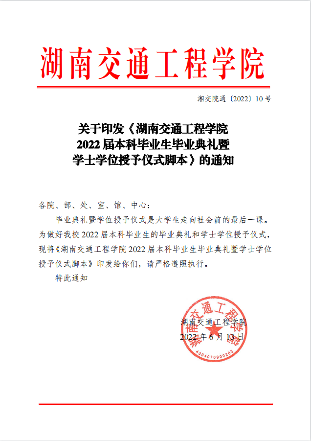 关于印发《bevictor伟德官网2022 届本科毕业生毕业典礼暨学士学位授予仪式脚本》的通知