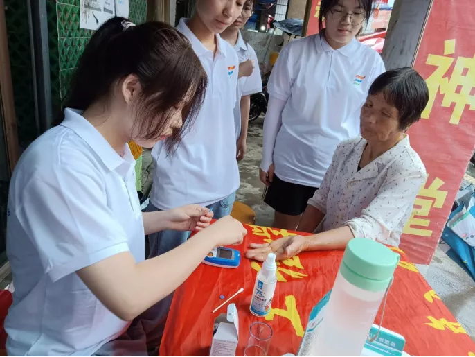 志愿者为村民测量血糖
