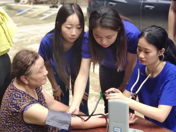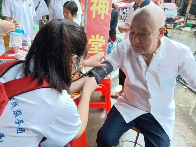 志愿者为村民们进行血压测量