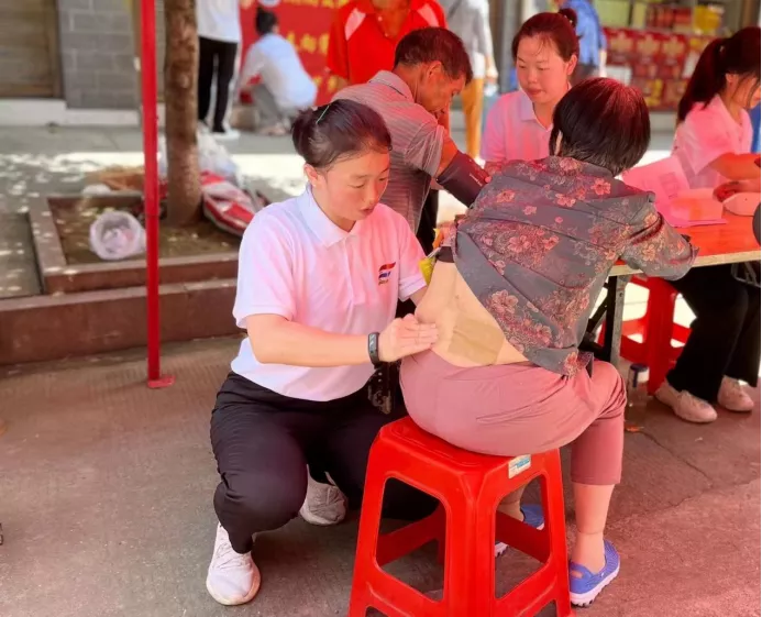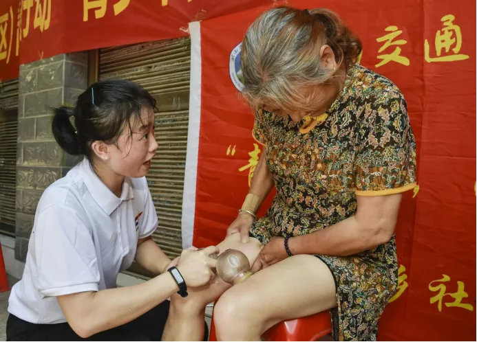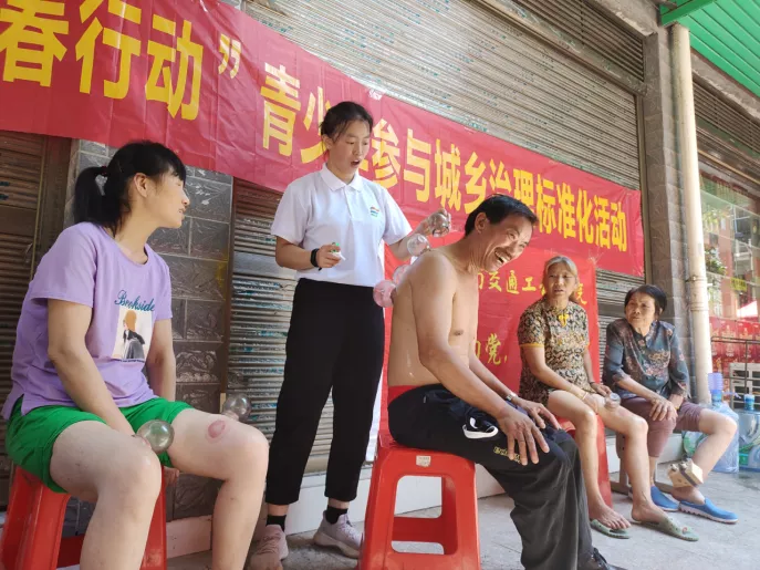 护理学院欧阳滢老师为村民拔罐、贴膏药