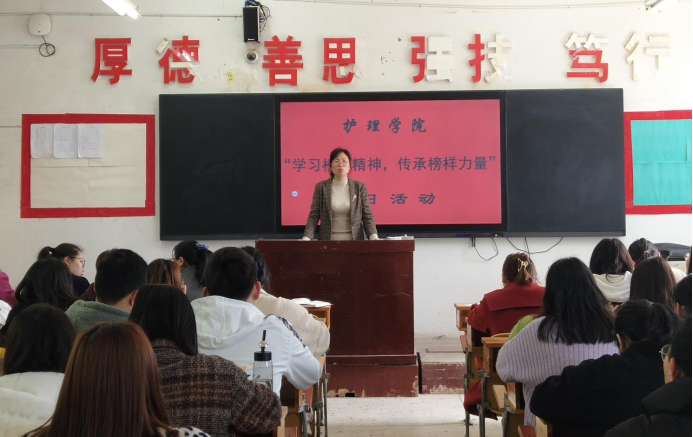 为进一步树牢支部党员的四个意识”,学习榜样精神牢记入党初心324日中午1230在教学楼104教室我院学生党支部开展学习榜样精神传承榜样力量主题党日活动参加此次活动的有护理学院党总支书记邓丽 护理学院党总支副书记兼团总支书记肖桂香全体支委和党员学生会议由学生支部书记贺九芳主持