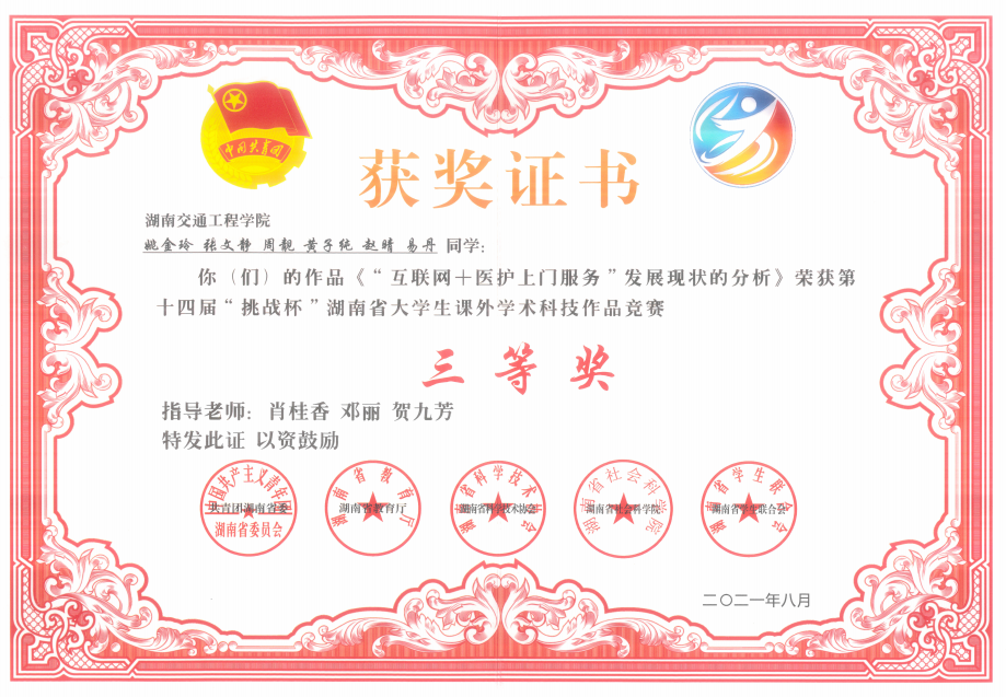 bevictor伟德获得2021年第十四届“挑战杯“湖南省大学生课外学术科技作品竞赛5个奖项