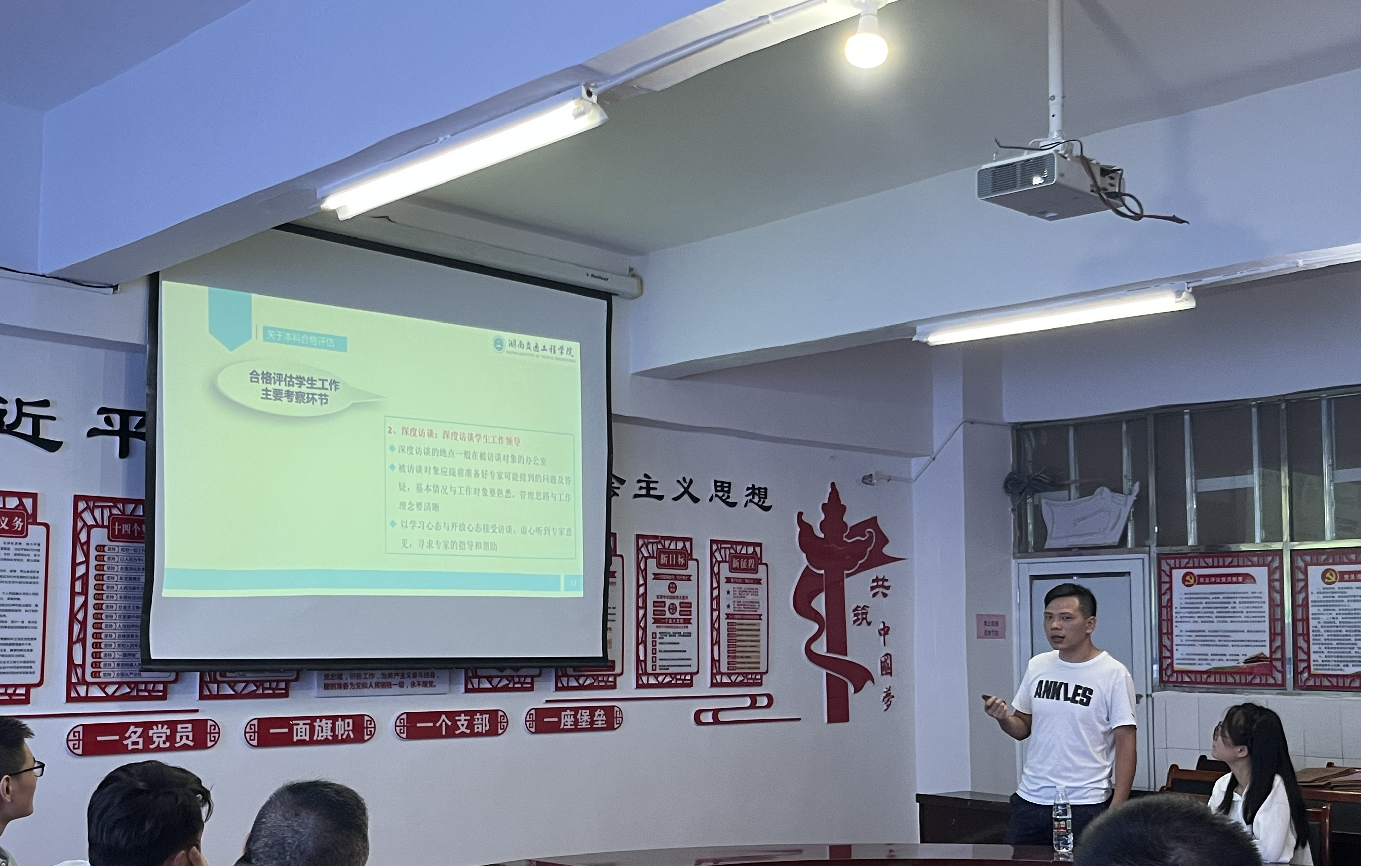 全体辅导员认真学习有关评估工作的文件,了解评估指标体系,深刻理解各项指标各个观测点的深刻内涵,明确目标任务,按照学校的统一部署,将迎评促建精神传递新生,在开学第一课中深入开展。