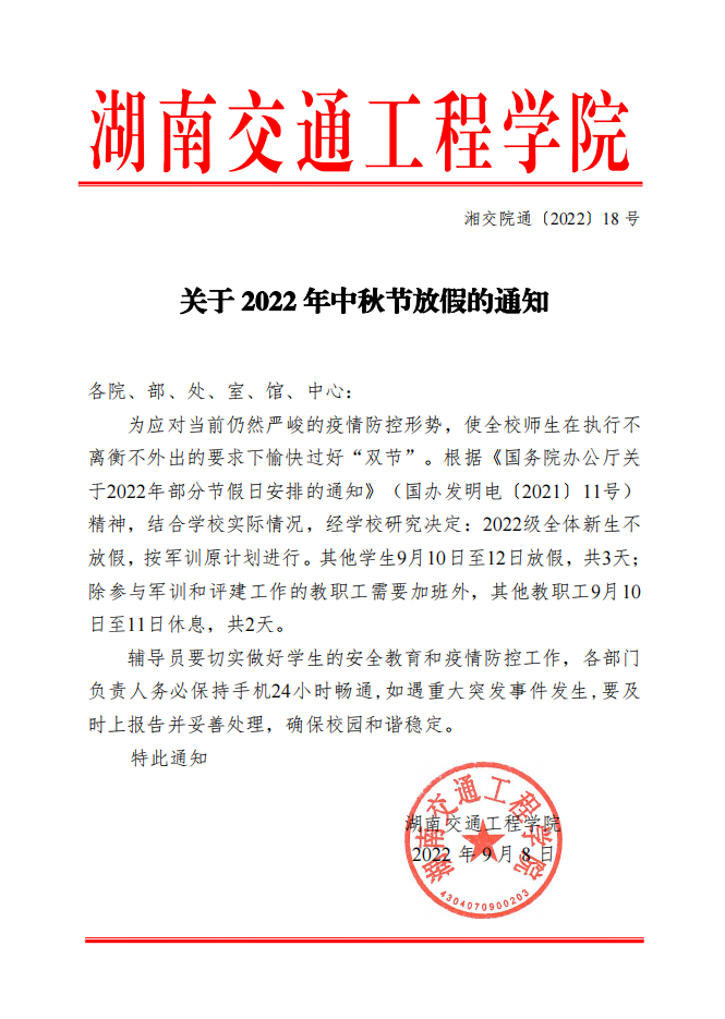 关于2022年中秋节放假的通知