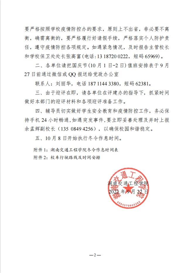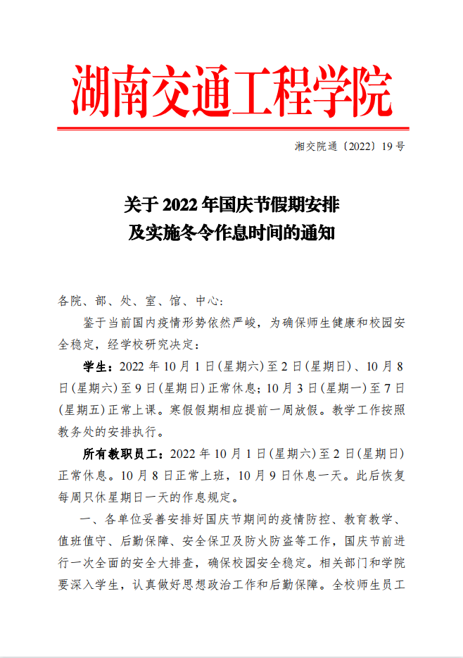 关于2022年国庆节假期安排及实施冬令作息时间的通知