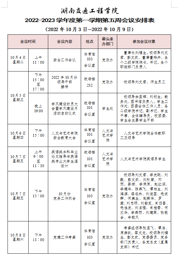 bevictor伟德官网2022-2023学年度第一学期第五周会议安排表